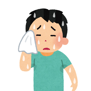 2~3年ほど前から。仕事の緊張からか。夏・冬、精神緊張時に悪化。休日など安息時は起こらず。発汗症状に、のどのつまり感・息苦しさ・吐き気・胃もたれ・げっぷ・頻尿・頻脈を伴う。一月後、大切な論文発表があり、その際上記症状が起こらないようにしてほしいとのこと。心療内科にて抗不安薬を服用するも無効だった。